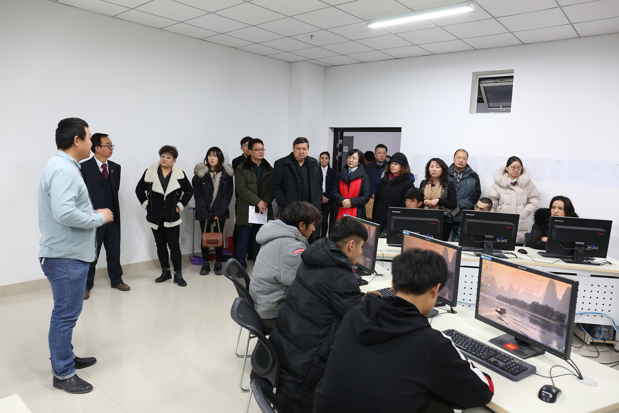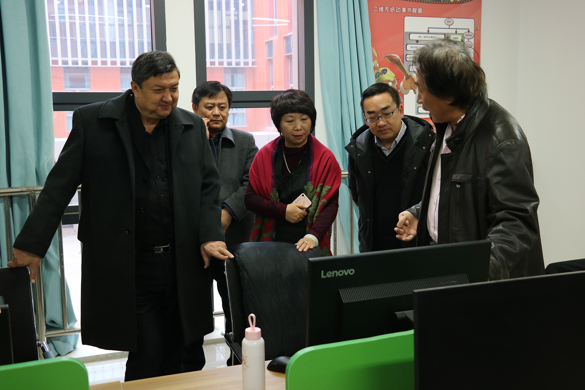 本次成果展示会上,新疆漫龙技术有限公司总经理张杰汇报了二维无纸动漫企业进校园的情况,2017年二维无纸动漫实训室建成,新疆漫龙技术有限公司派企业员工入驻校园,以兴趣班的形式开展二维动漫培训,目前已经有7名毕业生被该公司正式录用。王书记对此次座谈会讲话:学院的发展得到政府或者企业的支持,信息工程系深化校企合作、产教融合的成绩是值得肯定的,其他各系也做了很多的工作,目前学院的就业率在自治区也是名列前茅的,这些成绩与政府和各企业的支持分不开的,明年学院即将进行生均拨款,希望能有越来越多的好政策支持校企合作,有越来越多的企业参与到我院的建设发展中。最后,全体参会人员对信息工程系实训室进行参观,了解各个实训室的功能。
