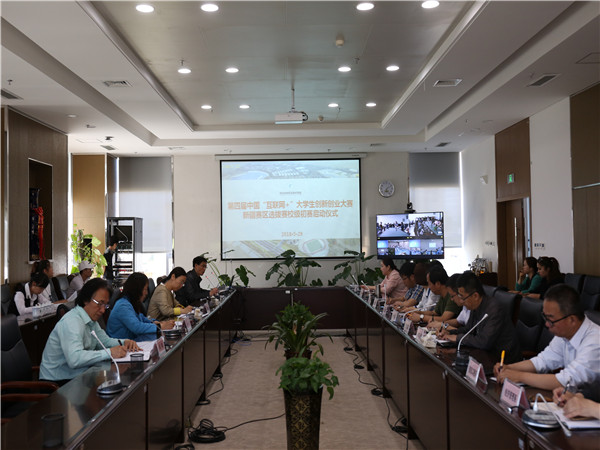 为学习贯彻习近平新时代中国特色社会主义思想和党的十九大精神,落实习总书记给中国“互联网+”大学生创新创业大赛“青年红色筑梦之旅”大学生重要回信精神,根据全国“青年红色筑梦之旅”活动安排和自治区《关于举办第四届中国“互联网+”大学生创新创业大赛新疆赛区选拔赛的通知》(新教高办〔2018〕6号)的相关要求,2018年5月29日下午18:00,我院举办第四届中国“互联网+”大学生创新创业大赛新疆赛区选拔赛校级赛启动仪式。本次活动由教务处主任赵磊主持,主会场设在机关楼一楼会议室,设克拉玛依校区C2-V-205、C2-V-206以及独山子校区视频会议室三个分会场,学院党委副书记、院长付梅莉,学院党委委员、副院长周刚,学院党委委员、副院长刘旭莹以及大赛领导小组全体成员、各专业系部指导老师、学生代表等共160余人参加启动仪式。