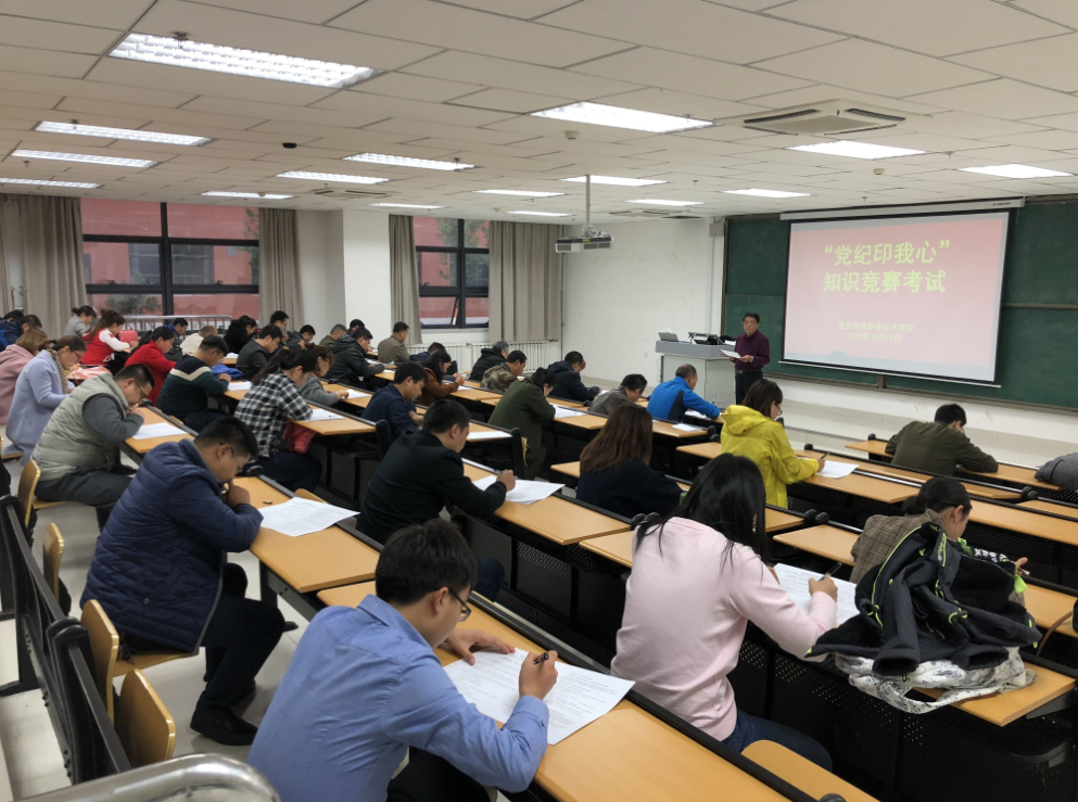 考试现场,各代表队党员干部聚精会神,认真做题,都在为各自代表队能进入决赛做着努力,充分展现出了党员干部的拼搏精神和团队精神。最终,经过试卷的批改工作和对各代表队的总分进行排名后,信息工程、石油化学工程、机关等8支代表队进入决赛。决赛将于26日在学术报告厅进行。
